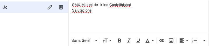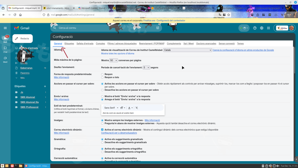He configurat la meva signatura al correu corporatiu. A Gmail, la signatura permet afegir de manera automàtica les dades de contacte o un tancament personalitzat en cada missatge, cosa que ajuda a estalviar temps i a transmetre una imatge professional coherent.