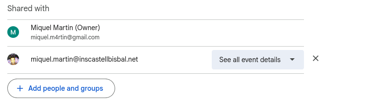 Escriu l’adreça de correu electrònic del compte corporatiu amb el qual vols compartir el teu calendari personal.