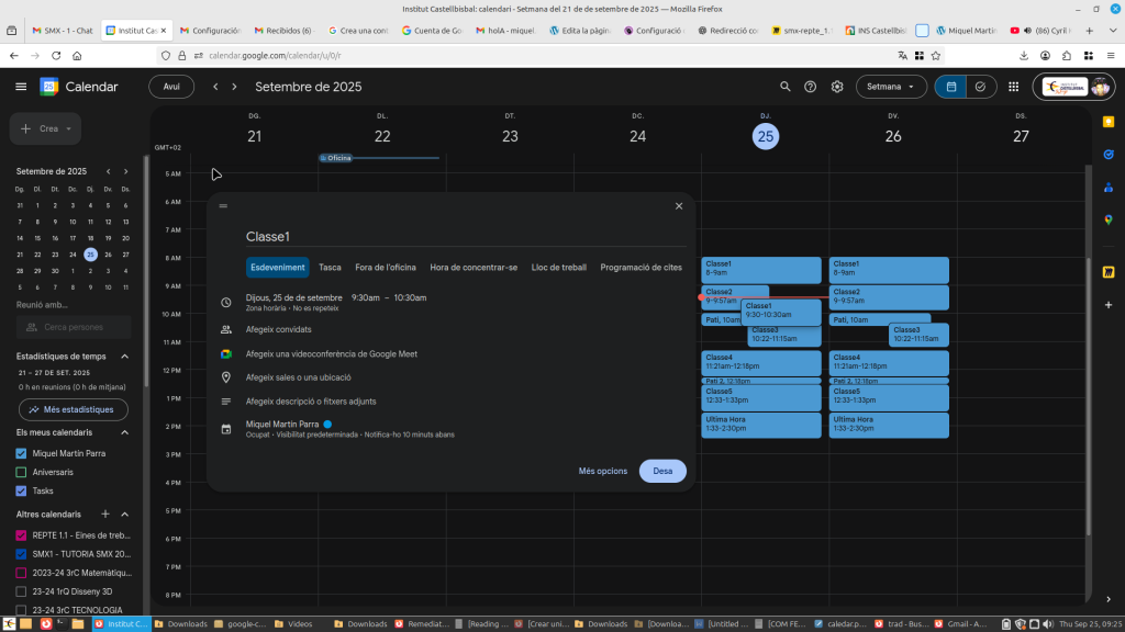 Si es tracta d’una classe recurrent, selecciona l’opció d’esdeveniment per poder programar-la amb repetició.
