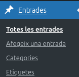 Un cop tinguem la categoria creada, l’haurem de configurar en una entrada. Al menú lateral, ves a l’apartat «Entrades».