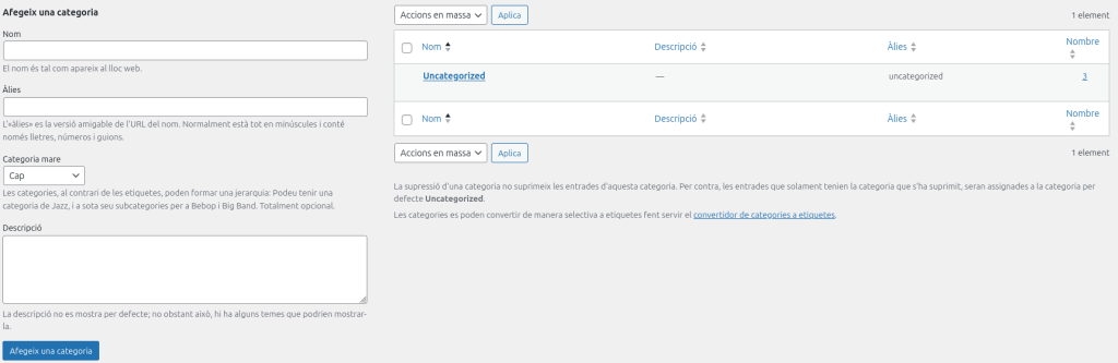 Un cop configurat, guardem i ja tindrem l’entrada categorizada.