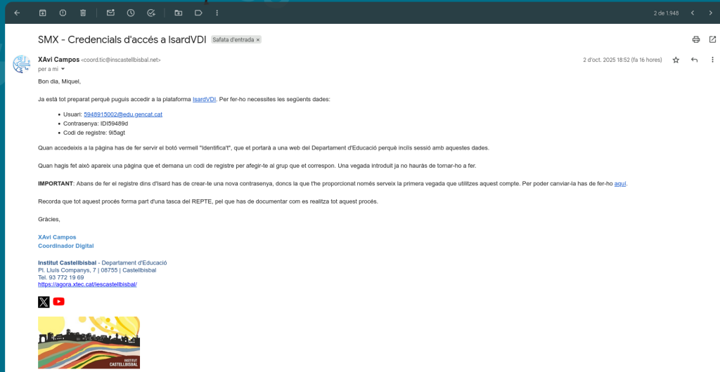 Un cop obres el correu has de fer click al primer enllaç,un cop dins tindras que registrarte amb les dades que et posa el Xavi